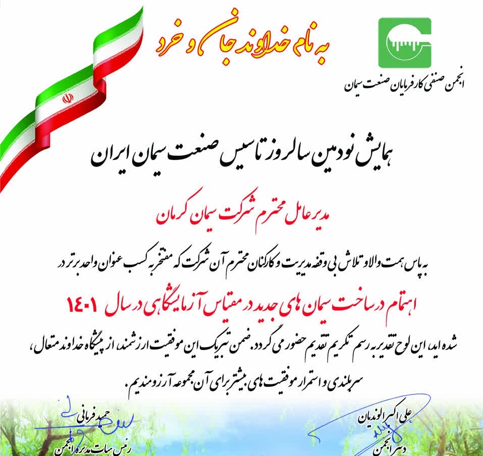 سیمان کرمان در جمع برترین های جشن نودمین سال تاسیس صنعت سیمان کشور